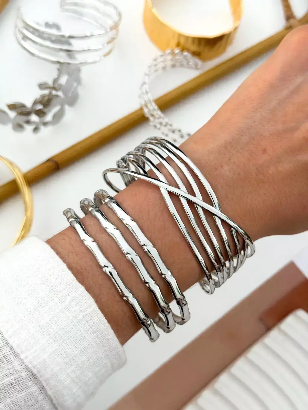 PACK X3 ESCLAVA/BRAZALETE PLATEADOS PA1248